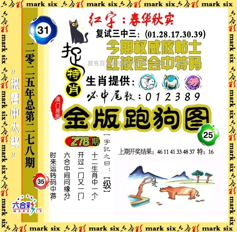 278期:阴阳两肖阳肖+鼠马】开:虎28准