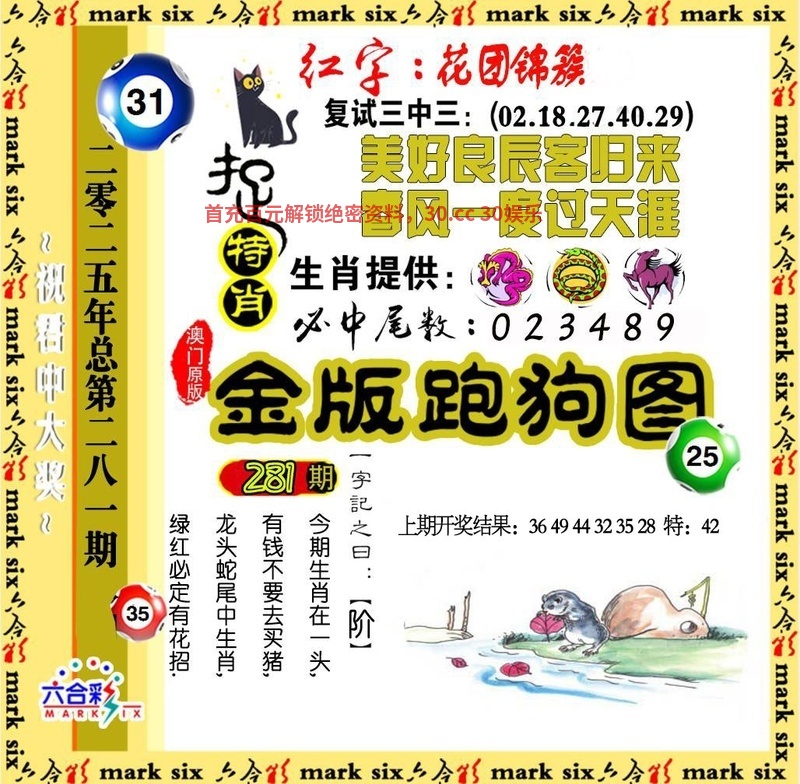 280期:阴阳两肖阴肖+虎兔】开:鼠42准